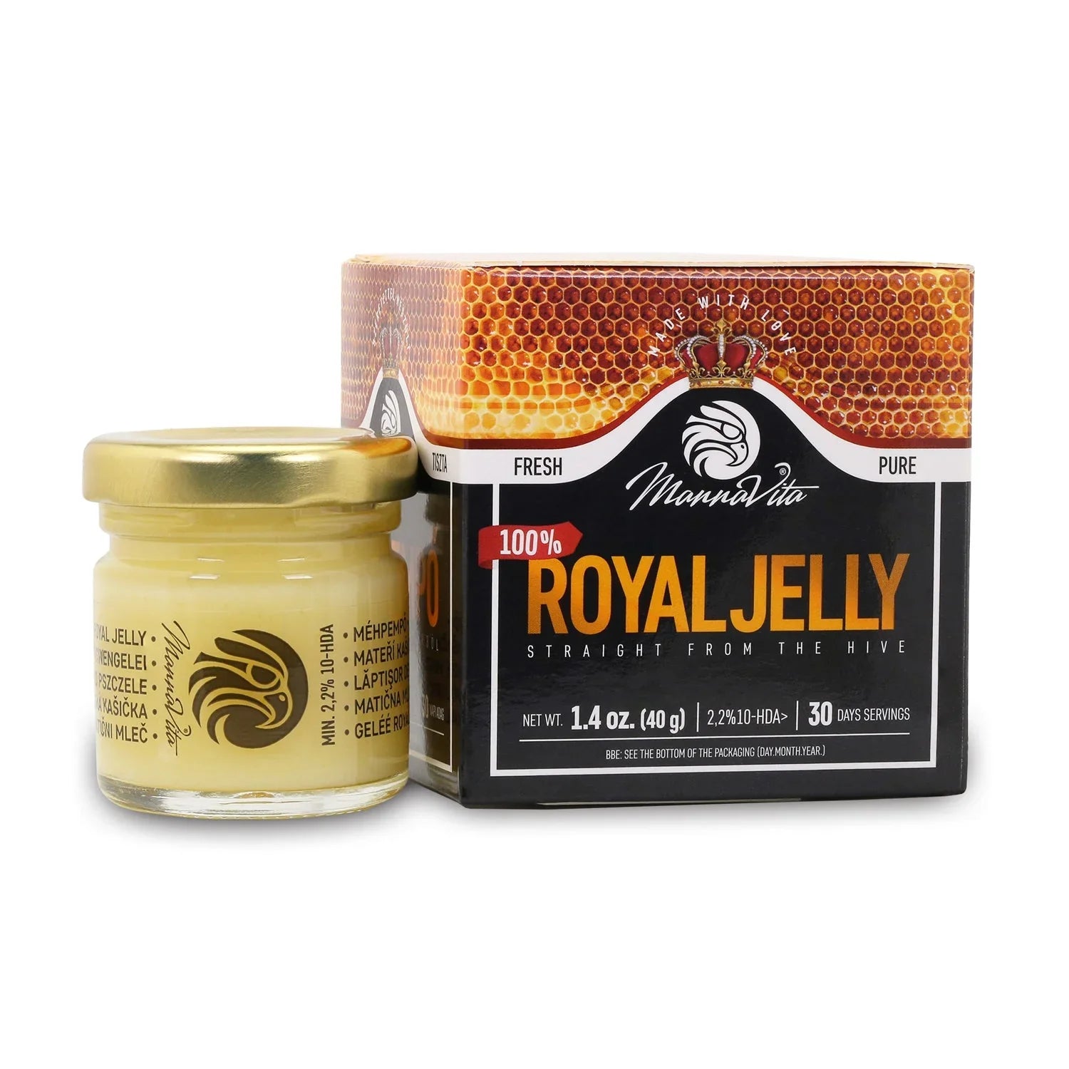 A geleia real é exclusivamente o alimento da abelha rainha na colmeia e uma das substâncias mais complexas e nutritivas da natureza. Pode ser incluída em terapias para uma grande variedade de condições de saúde. Muitas pessoas consomem a geleia real Mannavita como medida preventiva para suporte imunológico, desintoxicação, regeneração do fígado e equilíbrio hormonal.