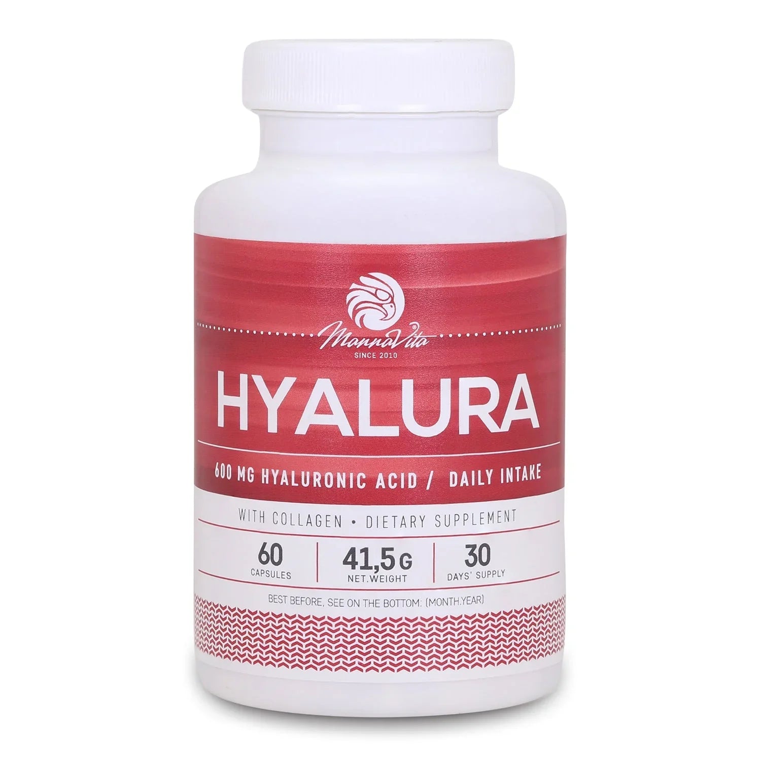 Com a Hyalura, pode efetivamente repor o ácido hialurónico. A absorção de ácido hialurónico é suportado pelo colagénio, vitamina C, zinco, e biotina contém. O ácido hialurónico é responsável por manter a humidade e saúde do cabelo, olhos, lábios e gengivas. Como um líquido articular, garante lubrificação das superfícies da cartilagem, desempenhando um papel crucial na prevenção desgaste da cartilagem.